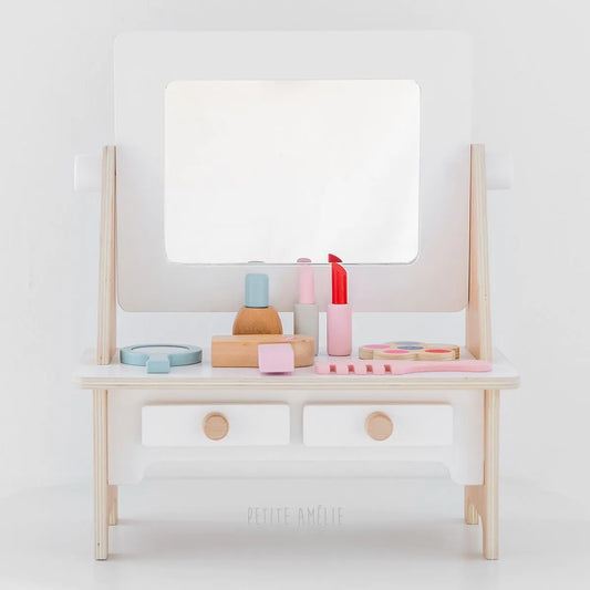 Coiffeuse pour Enfant en Bois avec Chaise Incluse – Couleur Rose