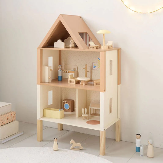 Maison de Poupées en Bois avec Ensemble de 17 Meubles – Couleur Beige