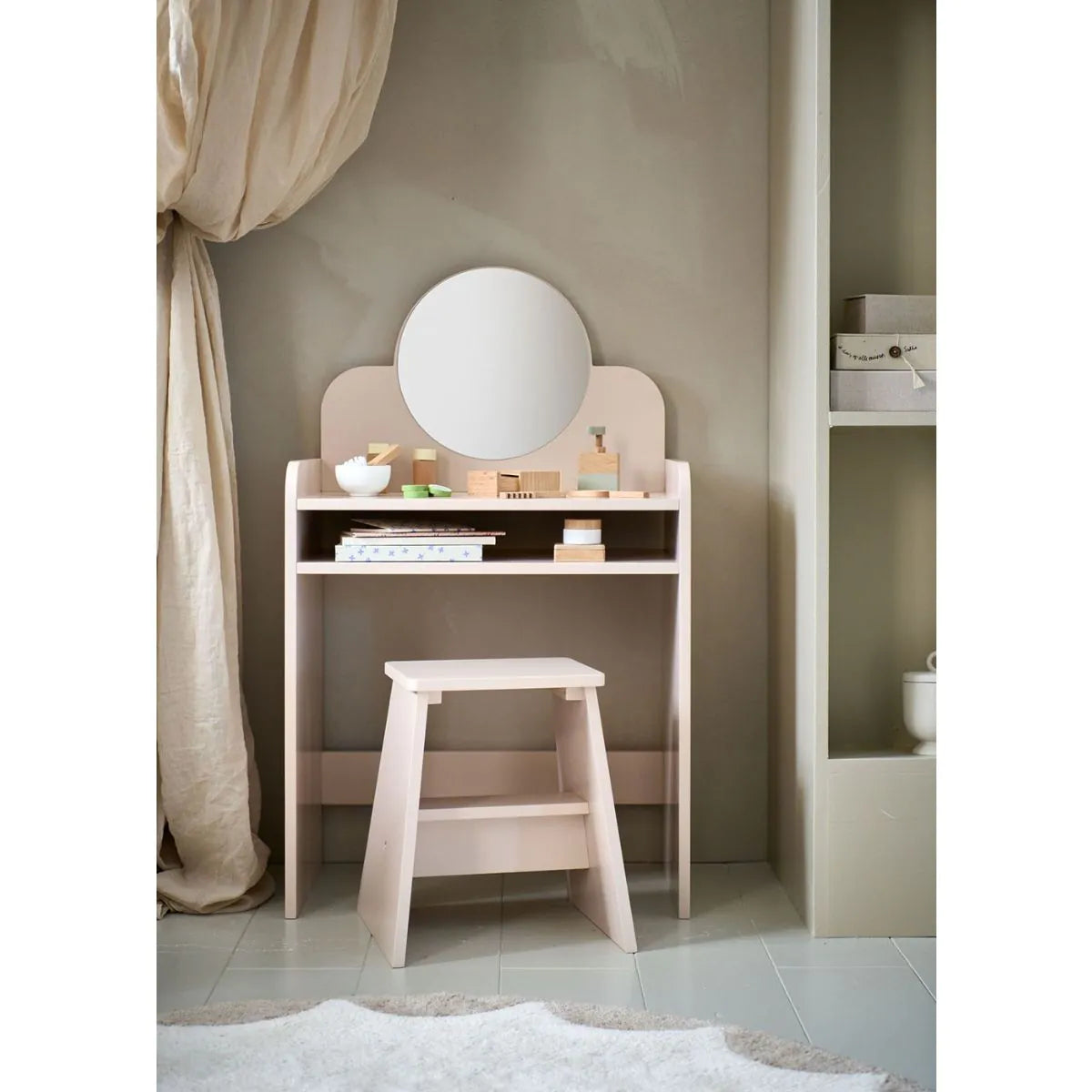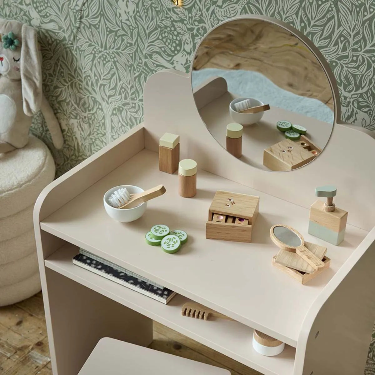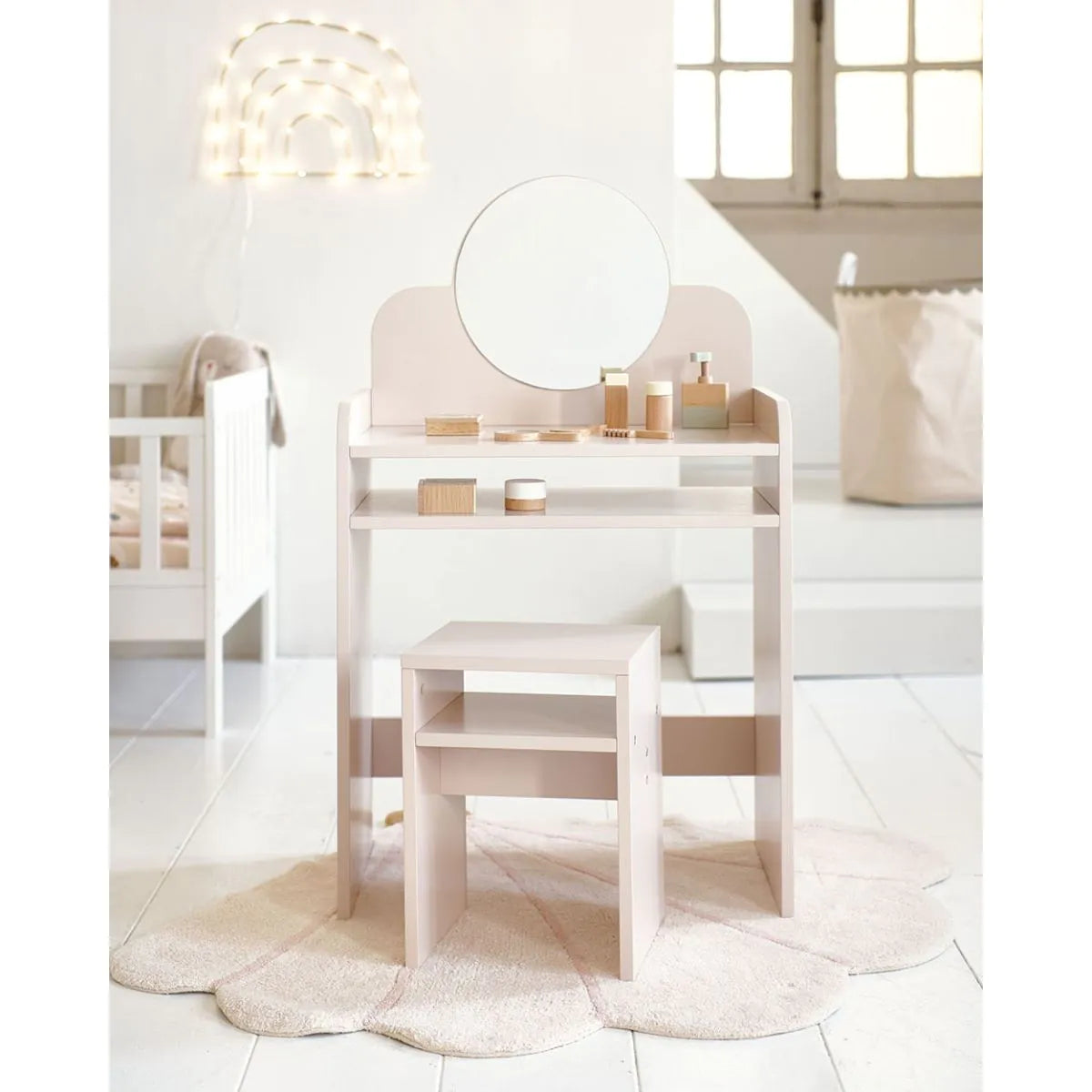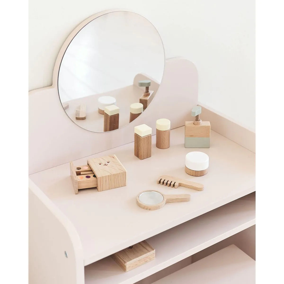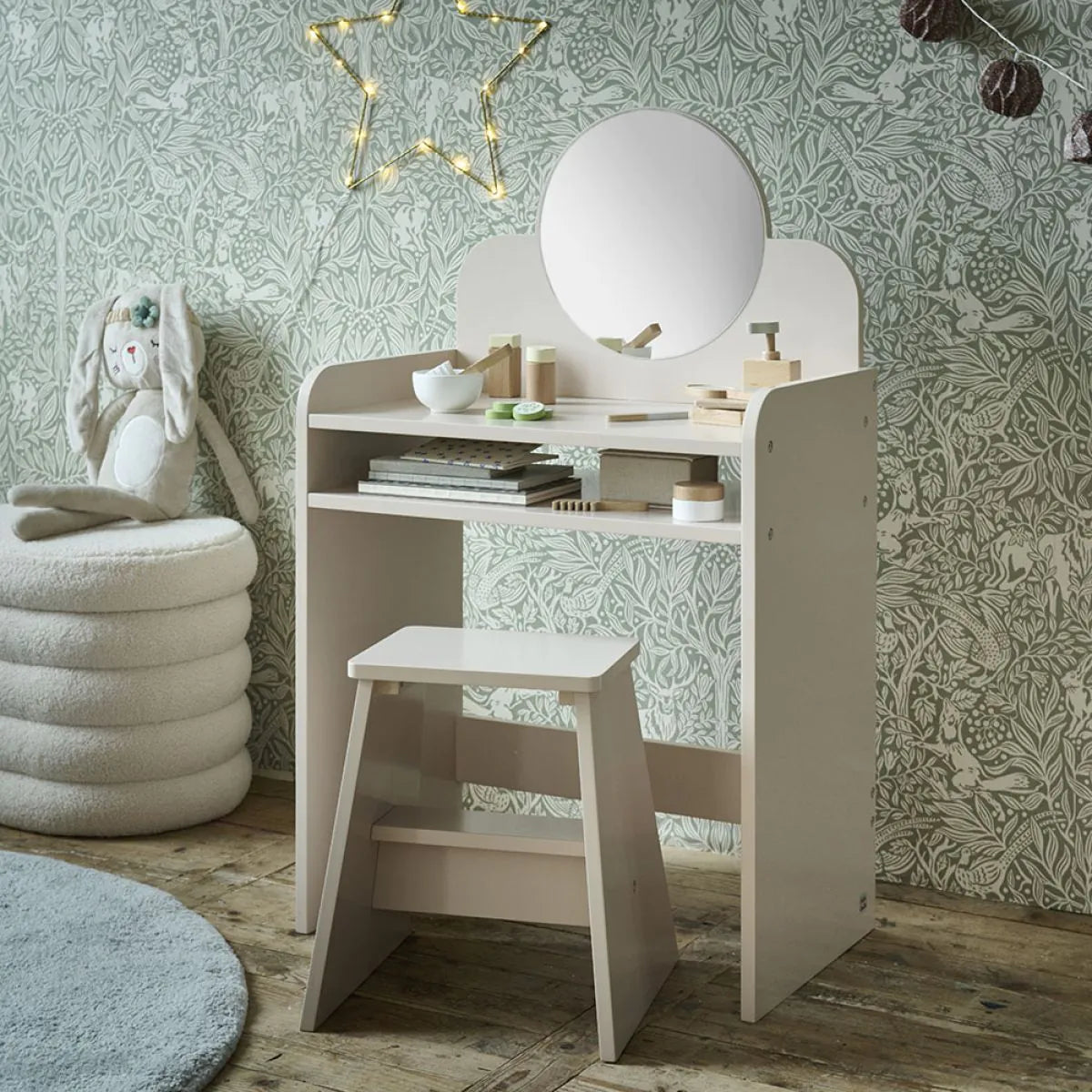 - Rangement pratique : Comprend un miroir et deux compartiments de rangement pour garder tous les petits trésors de votre enfant en ordre.