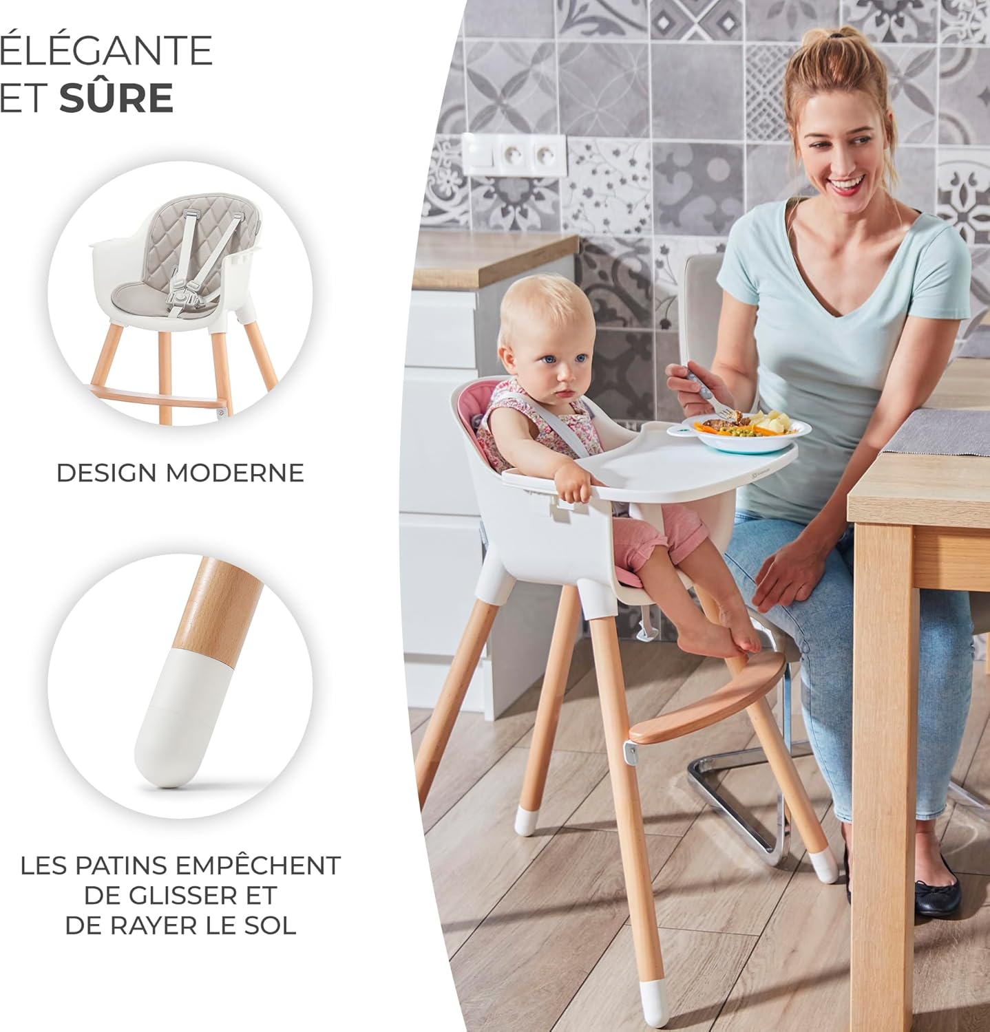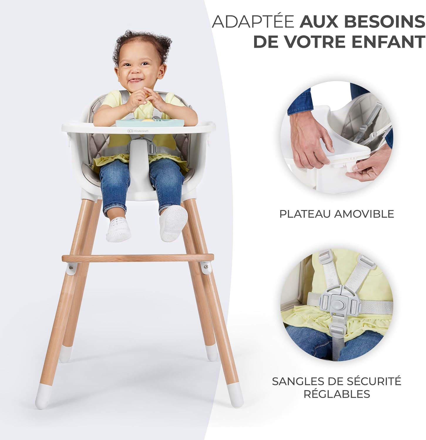 Alliant design scandinave, sécurité et praticité, la chaise haute SIENNA de Kinderkraft est conçue pour évoluer avec votre enfant. Dès 6 mois et jusqu’à 4 ans, elle se transforme facilement d’une chaise haute à une chaise pour enfant.