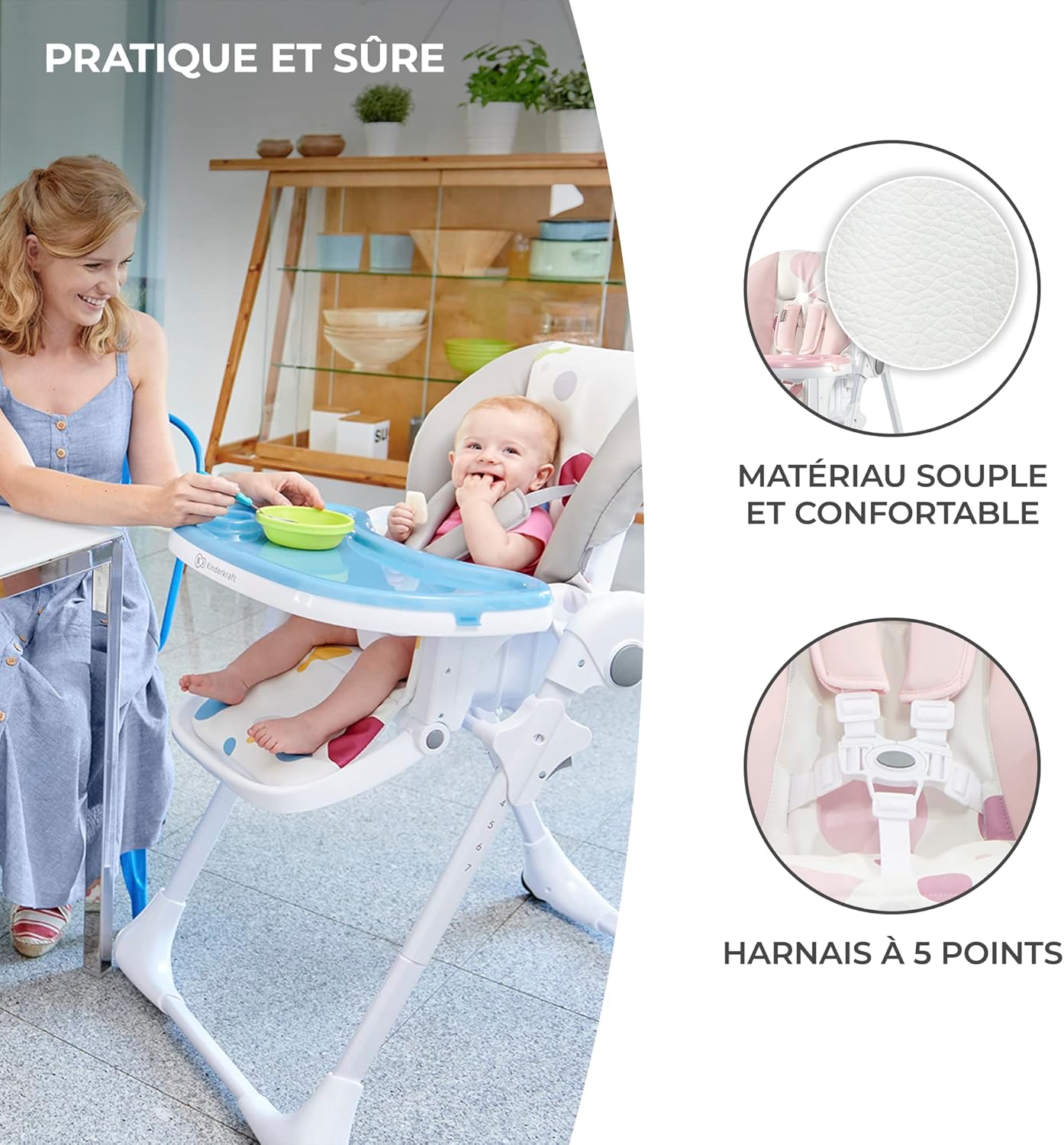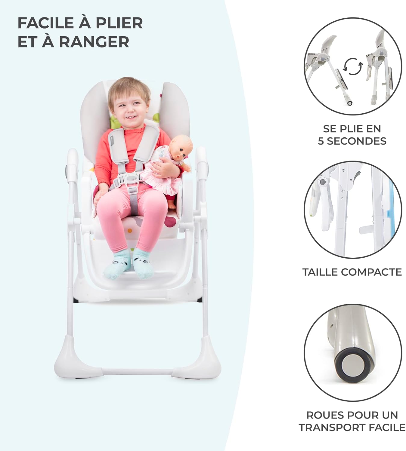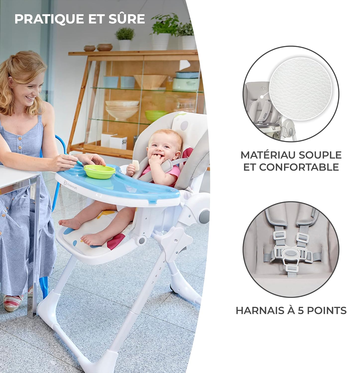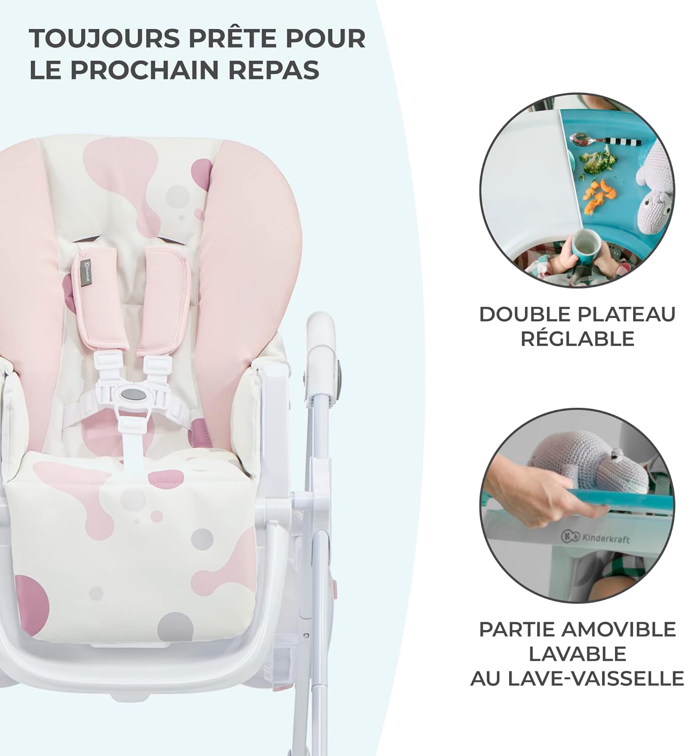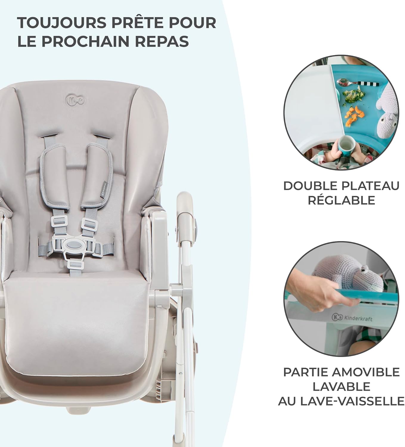 Confort, sécurité et praticité réunis dans une chaise haute pensée pour faciliter les repas dès les 6 mois de votre bébé. Kinderkraft YUMMY est une chaise multifonctionnelle et pliable, idéale pour un usage quotidien et facile à ranger.