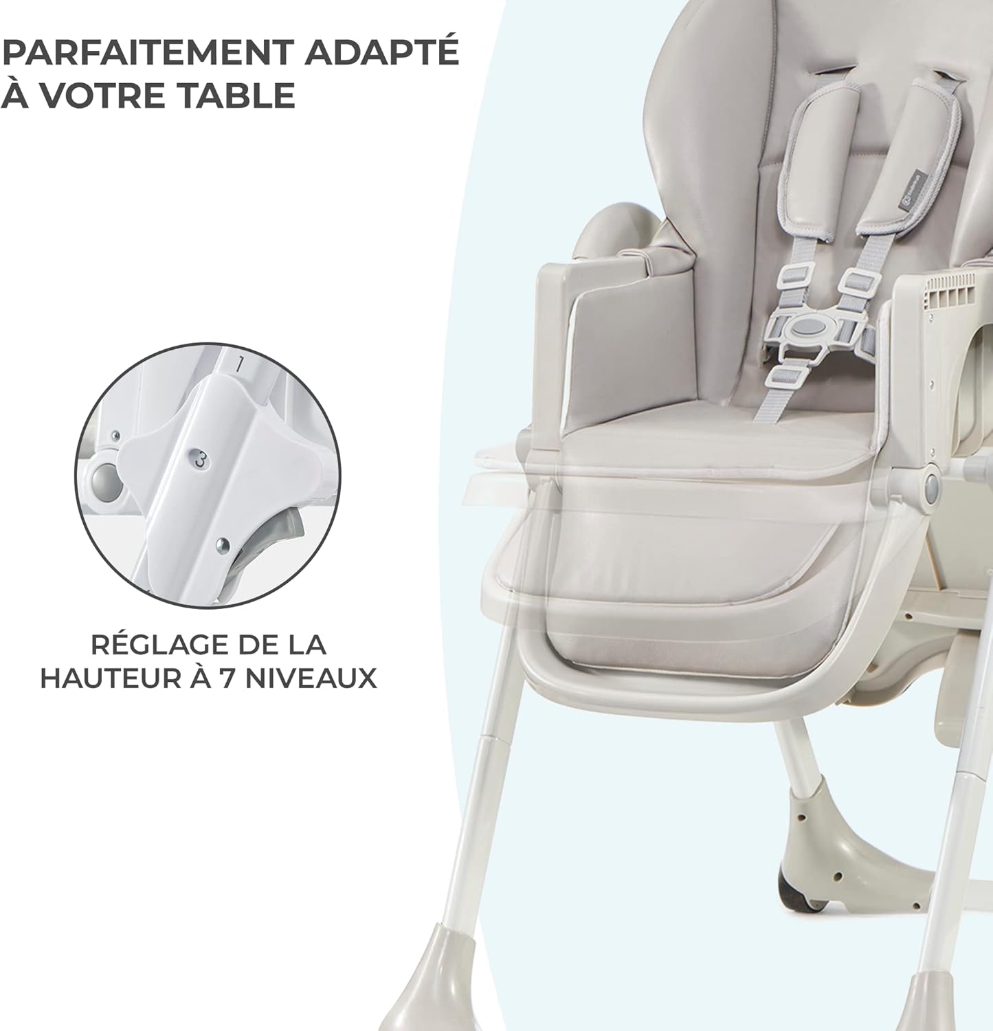 Réglable sur 7 hauteurs pour s’adapter à toutes les tables