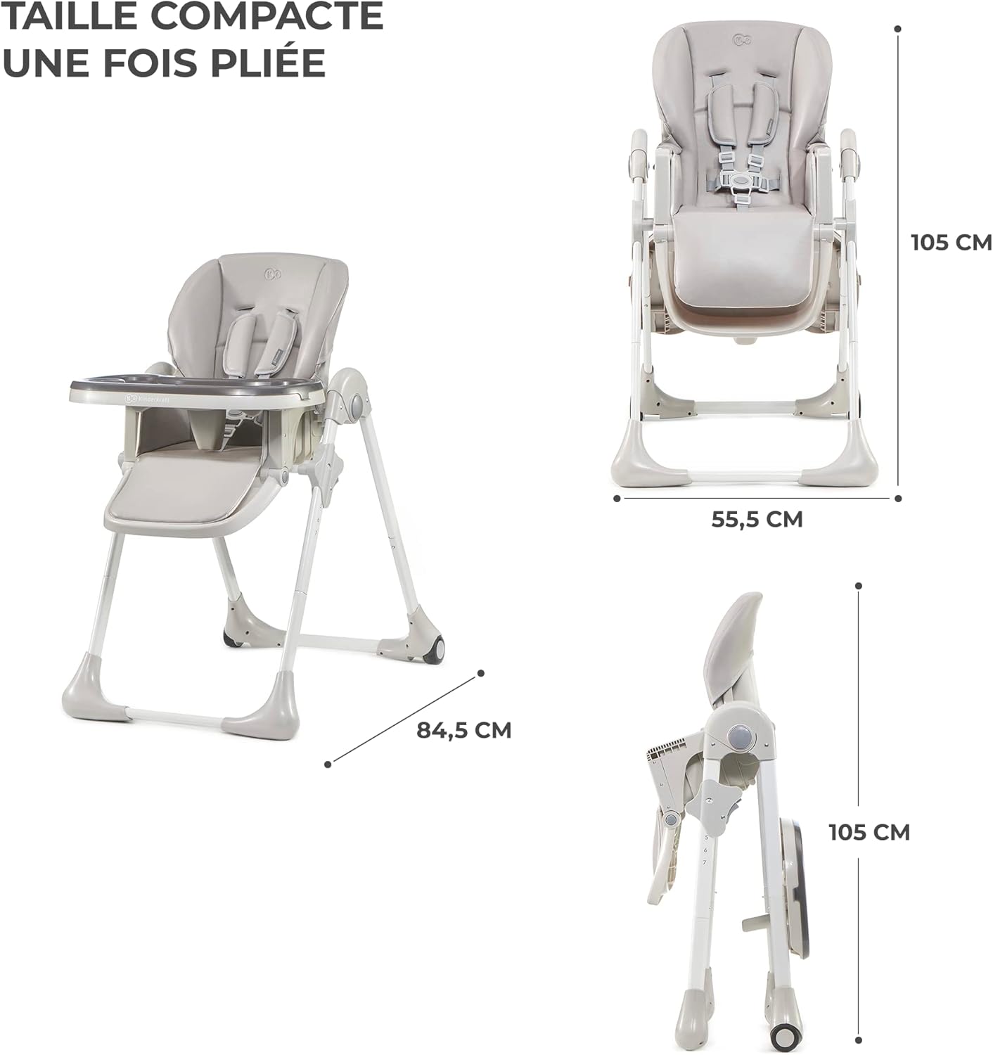 Kinderkraft YUMMY – Chaise Haute Bébé Réglable avec Plateau et Repose-Pieds – Gris, jusqu’à 15 kg