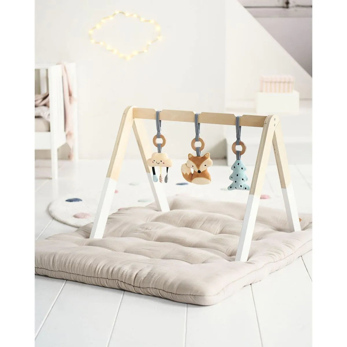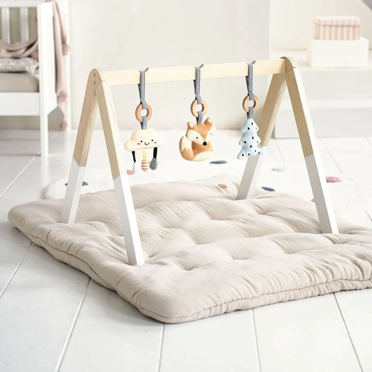Description du Produit : Portique pour Bébé en Bois avec 3 Accessoires Inclus
