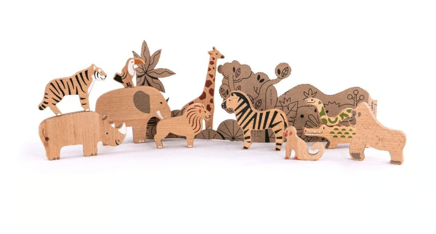 Leur forme épaisse les rend faciles à manipuler par de petites mains, favorisant ainsi la motricité fine et la créativité. Ce jouet libre encourage le jeu d’imagination, le langage et la découverte du monde animal.